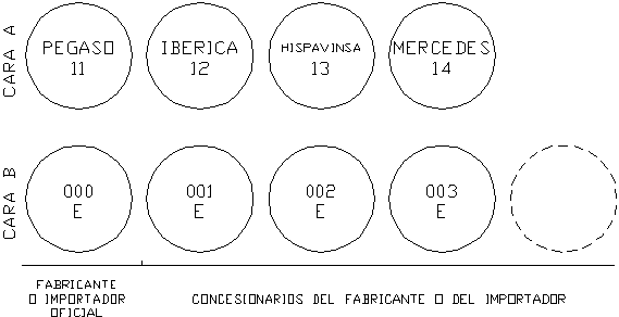 El número de orden del anverso será de dos cifras, que serán comunes para cada fabricante o importador de vehículos y sus concesionarios. El número correlativo del reverso será de tres cifras, reservándose el "000", Para el fabricante o importador para cuando el montaje y la comprobación inicial se realice por esté en sus propios talleres.