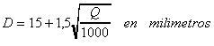 En caso de no presentar dicho cálculo justificativo se adoptará el diámetro que resulte de aplicar la fórmula siguiente: