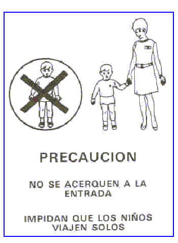 Tercero.- En los ascensores sin puerta de camarín, existentes o que se instalen antes de la entrada en vigor de esta Orden, deberá colocarse en sus cabinas un letrero bien visible con las inscripciones y tamaño que figuran en el modelo adjunto.