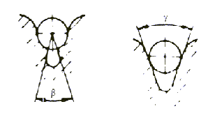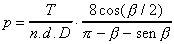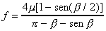 es el ángulo de la garganta entallada o semicircular de la polea de tracción (red) (=0 para gargantas semicirculares).