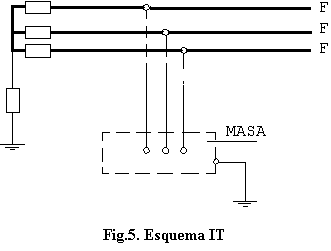 IT no tiene ningún punto de la alimentación conectado directamente a tierra. Las masas de la instalación receptora están puestas directamente a tierra (fig. 5).