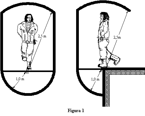 Se considerará zona alcanzable con la mano la que, medida a partir del punto donde la persona pueda estar situada, está a una distancia límite de 2,50 metros hacia arriba, 1,00 metros lateralmente y 1,00 metros hacia abajo. En la figura 1 se señala gráficamente esta zona.