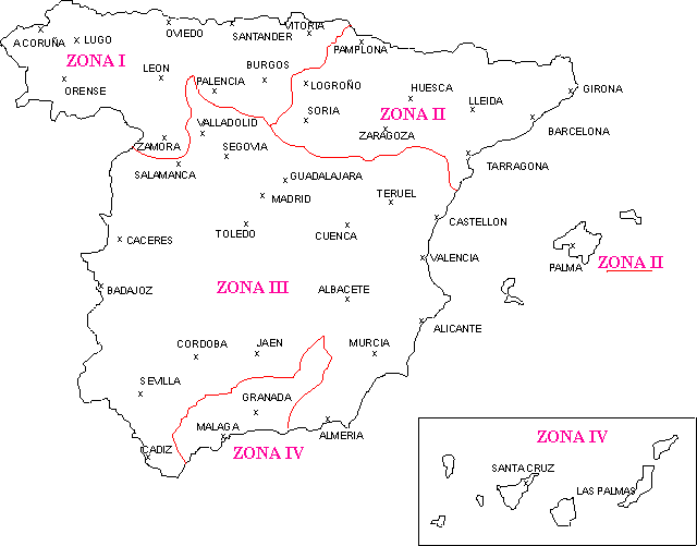 Fig. A.2- Zonas para la determinación de la sobrecarga de nieve