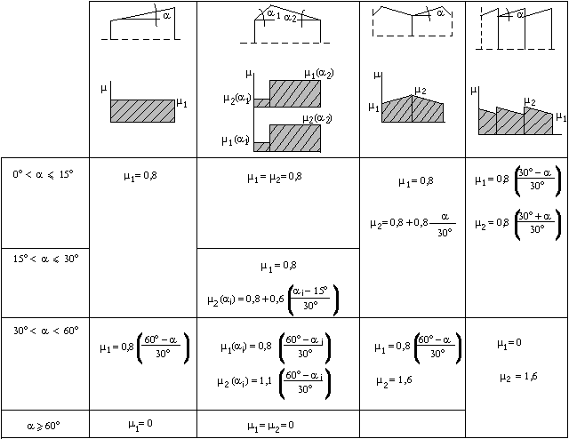 En general, se pueden identificar tres situaciones de carga de nieve, tal y como se especifica a continuación. En casos normales, las tres están cubiertas mediante los coeficientes de forma de la figura A 3. Las tres situaciones son las siguientes: