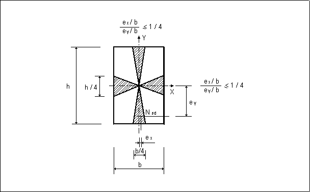Dicha excentricidad debe ser contada a partir del centro de gravedad de la sección bruta y en la dirección más desfavorable de las direcciones principales y sólo en una de ellas.