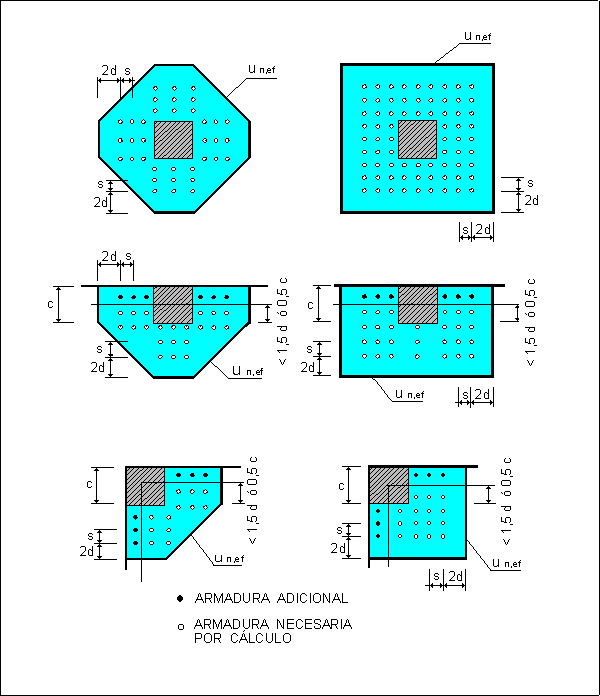 La armadura de punzonamiento debe definirse de acuerdo con los siguientes criterios: