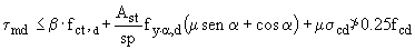 b fct,d=0)La capacidad resistente a esfuerzo rasante está obtenida bajo la hipótesis de un espesor medio mínimo del hormigón a cada lado de la junta de 50 mm, medido normalmente al plano de la junta, pudiéndose llegar localmente a un espesor mínimo de 30 mm.