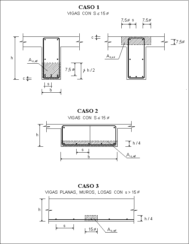 Ac, eficaz - Área de hormigón de la zona de recubrimiento, definida en la figura 49.2.5.b, en donde las barras a tracción influyen de forma efectiva en la abertura de las fisuras.