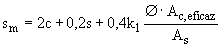 sm - Alargamiento medio de las armaduras, teniendo en cuenta la colaboración del hormigón entre fisuras.