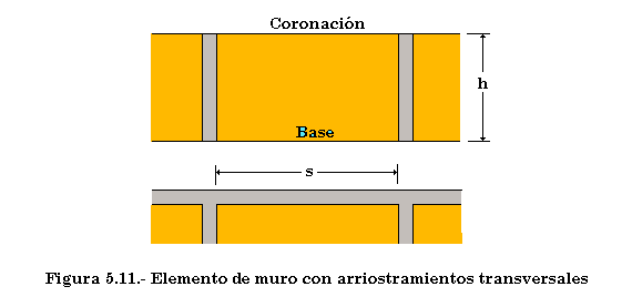 Los esfuerzos horizontales que actúan en un edificio, señalados en el apartado 4.7, se transmiten horizontalmente por los forjados a los muros que solamente pueden resistirlos cuando actúan en su dirección longitudinal, ya que la resistencia de un muro a esfuerzos perpendiculares a su paramento es muy escasa y por ello se proyectarán muros con disposiciones cruzadas.