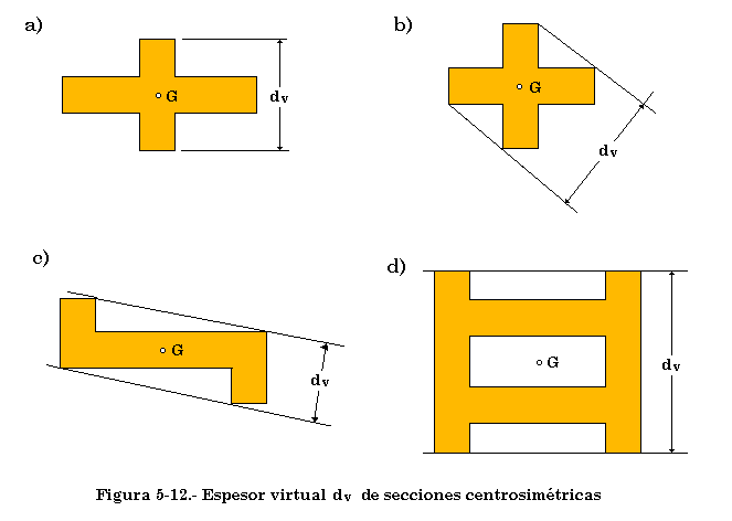 Sección centrosimétrica (Figura 5.12): la mínima dimensión entre rectas paralelas aplicadas al perímetro.
