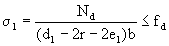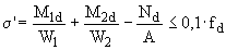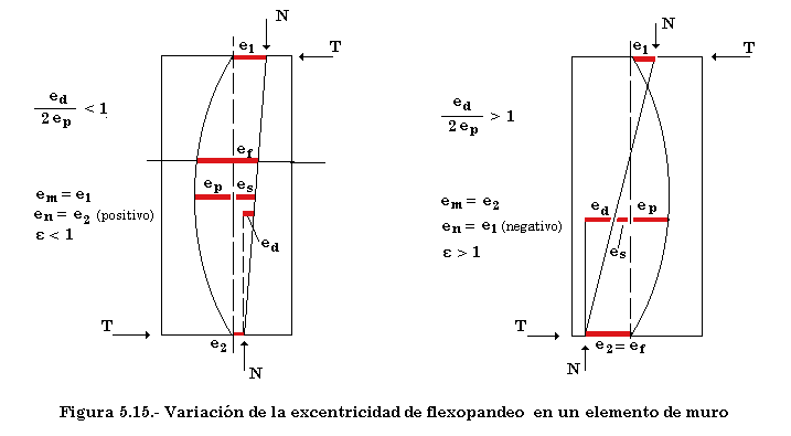 N, que actúa con excentricidad e1 en su coronación y excentricidad e2 en su base (Figura 5.15), se calcula con la excentricidad ef máxima que se produce en el flexopandeo.