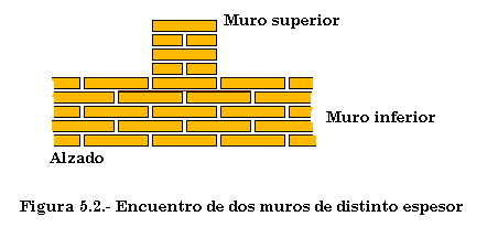 Se recomienda el armado de las juntas en el muro inferior y hacer coincidir en la primera hilada de éste llagas con los paramentos del muro superior (Figura 5.2).