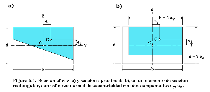 La excentricidad en en el extremo opuesto es positiva si va en el sentido de em, (Figura 5.15 a), y negativa, si va en sentido contrario (Figura 5.15 b).