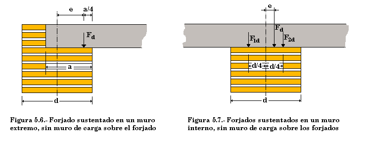 Los muros que reciban longitudinalmente las reacciones horizontales de los forjados en cada piso, se calcularán considerando las excentricidades que estas reacciones producen en el plano del muro al componerse con las cargas verticales, además de las excentricidades normales a este plano.