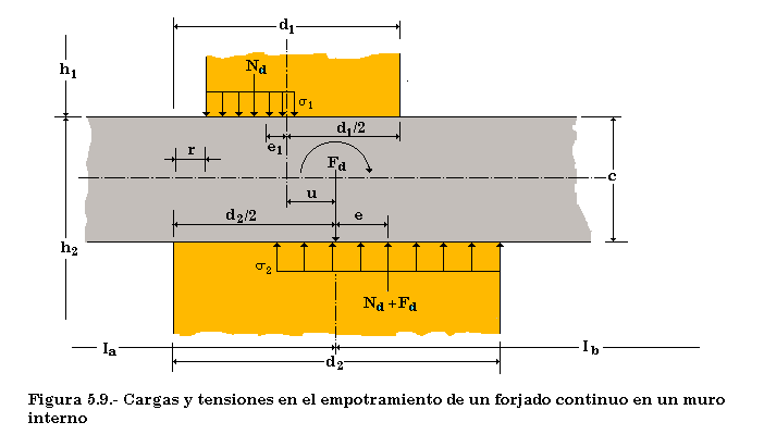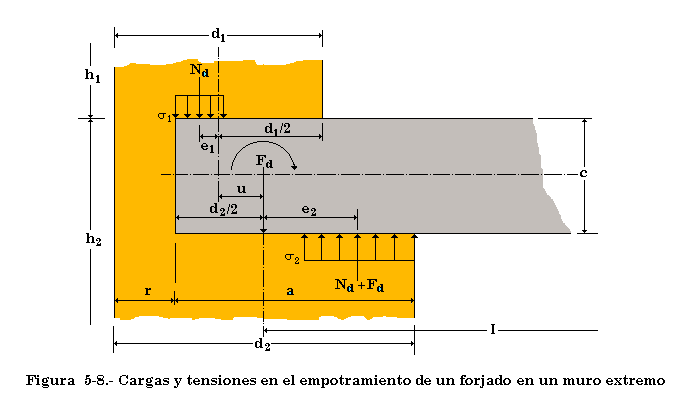 l, exista un muro que permita producir efecto de arco sin huecos que lo perturben, la carga a considerar será: el peso del muro situado en una altura k = 0,6 l y las de forjados y las aisladas situadas hasta una altura l.5.7.2 - Empotramiento