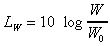 W es la potencia acústica considerada, en W.