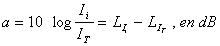 ecuación que expresada en decibelios se transforma en: