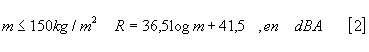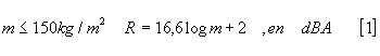 Su aislamiento se determinará mediante ensayo, pudiendo en su defecto, utilizarse la expresión [2] en la que m es la masa total del elemento expresada en kg/m2.