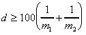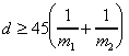 - La separación d, en cm, entre ambas hojas debe cumplir la siguiente expresión en la que m1 y m2 son las masas de las hojas expresadas en kg/m2