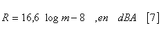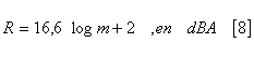 Los valores del aislamiento proporcionado por estos paramentos se determinarán mediante ensayo. No obstante, y en ausencia de ensayo, puede decirse que el aislamiento acústico proporcionado por particiones simples constituidas por mampuestos o materiales homogéneos, es función casi exclusiva de su masa siendo aplicables las ecuaciones siguientes que determinan el aislamiento R valorado en dBA, en función de la masa por unidad de superficie m, expresada en kg/m2: