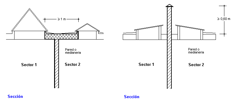 2. Cuando una medianería o un elemento de compartimentación en sectores acometa a la cubierta, la resistencia al fuego de ésta, será al menos igual a la mitad de la exigida al elemento de que se trate, en una franja cuya anchura sea igual a 1 m. No obstante, si la medianería o el elemento compartimentador se prolongan por encima del acabado de la cubierta 0,60 m o más, no es necesario que la cubierta cumpla la condición anterior.