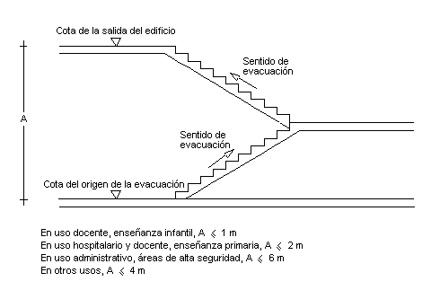No podrán destinarse a permanencia habitual de alumnos de escuela infantil o de centros de enseñanza primaria las zonas de un edificio cuya evacuación hasta alguna salida del edificio precise salvar en sentido ascendente una altura mayor que 1 m ó que 2 m, respectivamente. |