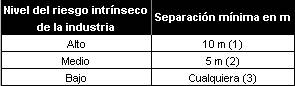 5.1.3. La siguiente Tabla establece la distancia que deberán guardar los edificios a los cuales es de aplicación la presente NBE, respecto de pequeñas industrias que, por su naturaleza y tamaño, puedan ser ubicadas en el interior de casos urbanos y según. sea el riesgo intrínseco de estas. Dicho riesgo intrínseco se establecerá conforme a los criterios contenidos en el Apéndice IV.