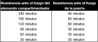 3.3.6. Las puertas y otros elementos de cierre practicable de huecos interiores contenidos en elementos compartímentadores de un sector de incendio, ofrecerán los siguientes tiempos de resistencia ante el fuego por la cara que se determine, en función de la que sea exigible a dicho elemento compartimentador.