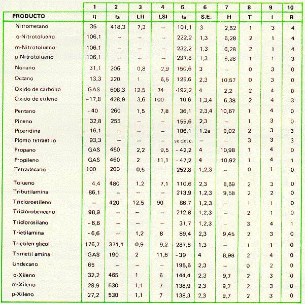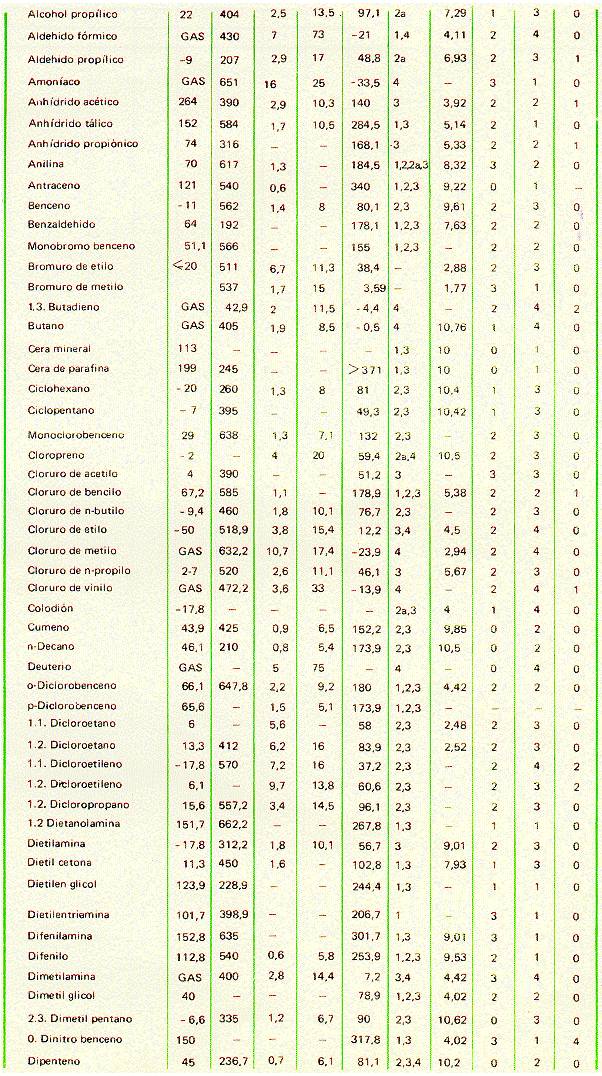 En las tablas adjuntas se incluyen las propiedades y características de los gases, líquidos y sólidos de 156 productos usuales en la industria.