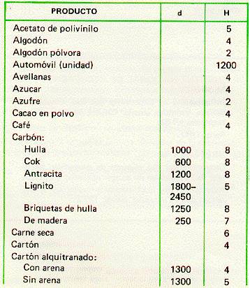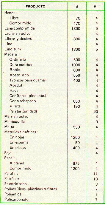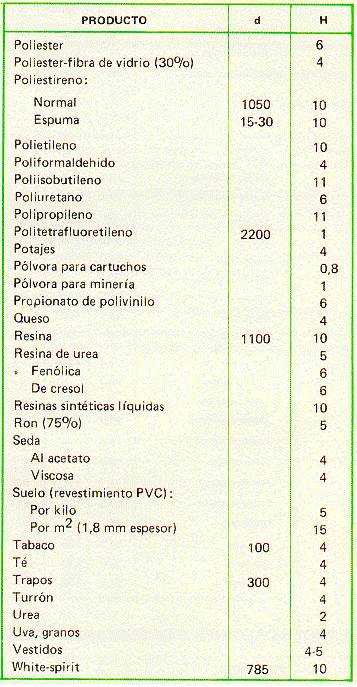 Se incluye también una tabla con el poder calorífico útil de una serie de sustancias comunes no incluidas en la tabla general.