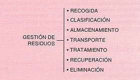 Se entiende por gestión el conjunto de actividades encaminadas a dar a los residuos tóxicos y peligrosos el destino final más adecuado de acuerdo con sus características; comprende las operaciones de recogida, clasificación, almacenamiento, transporte, tratamiento, recuperación y eliminación de los mismos (fig. 3).