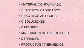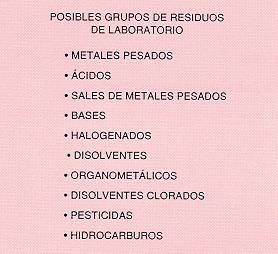 En el laboratorio, considerando los conceptos anteriores y las características de los residuos generados, se pueden distinguir los siguientes grupos: