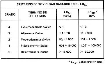 Para vía digestiva.- L.D. - 50 (Dosis letal en ratas). Cantidad ingerida por una muestra de ratas y que ocasiona la muerte del 50% de la muestra.