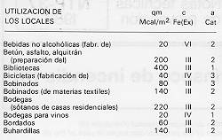 qm es la carga térmica mobiliaria. Si en la construcción y decoración del inmueble se emplearan cantidades apreciables de combustibles, la carga térmica que ello comportaría debe sumarse a la contenida en las tablas.