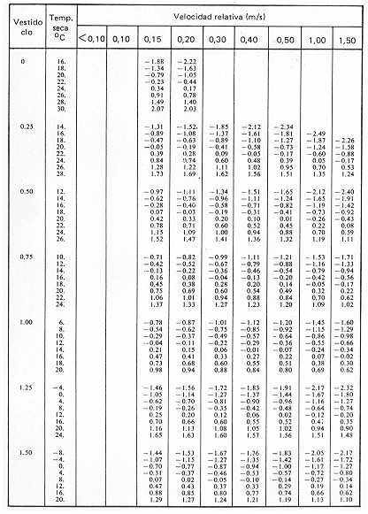 Los valores de la Tabla 1 presuponen una humedad relativa del 50% y que la temperatura radiante media y la seca son iguales.