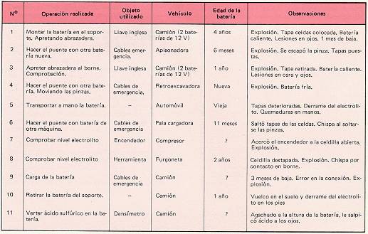 En el cuadro I se muestran algunos accidentes originados por baterías de plomo que han sido recogidos en el CIAT de Barcelona, ofreciéndonos una muestra real de este tipo de siniestros.