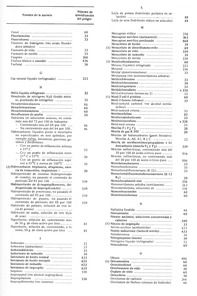 La clave para la identificación del peligro del producto queda también detallada en la Tabla nº 1 en la que la primera cifra a la izquierda indica el peligro principal y la segunda y tercera los subsidiarios según el código siguiente: