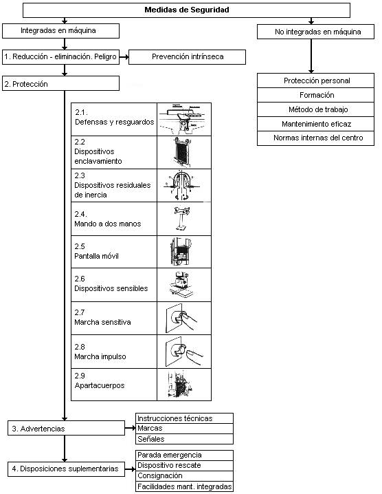 Las medidas de seguridad aplicables a una máquina, se pueden dividir en: