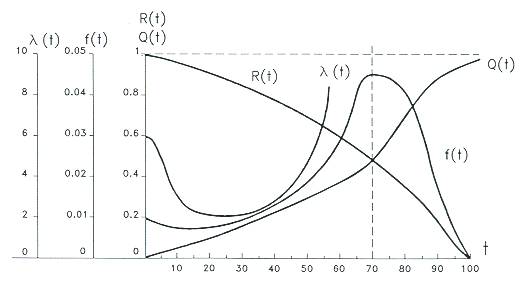 Se cumple que la probabilidad de producirse una avería en un elemento entre t y t + d t o sea f (t) dt es igual a la probabilidad de que funcione hasta t (fiabilidad) por la probabilidad de que falle entre t y t + d t. Puesto de forma matemática se cumplirá: