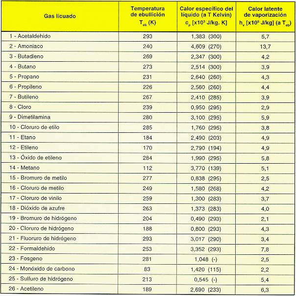 Tabla 1: Propiedades de los gases licuados a presión más comunes |