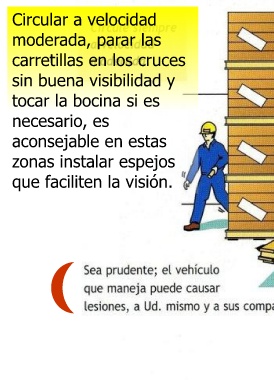 El conductor de la carretilla es responsable de su buen uso en lo que se refiere a: • Seguridad general en el centro de trabajo. • Vehículo y carga. • Su propia seguridad. VELOCIDAD CIRCULACION