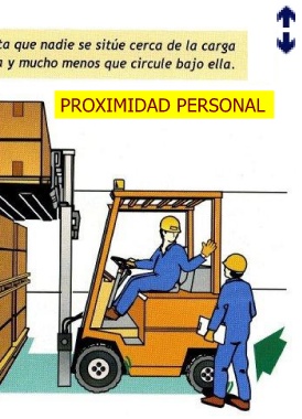 MEDIDAS PREVENTIVAS PROXIMIDAD PERSONAL Avanzar la carretilla hasta que la carga se encuentre sobre el lugar de descarga. Situar las horquillas en posición horizontal y depositar la carga, separándose luego lentamente.