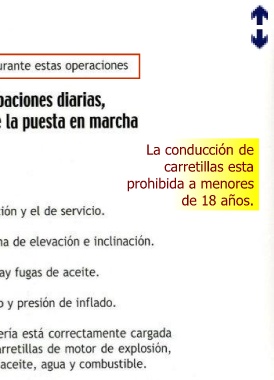 COMPROBACIONES DIARIAS A realizar por el La conducción de conductor carretillas esta habitual o prohibida a menores personal de de 18 años. mantenimiento.