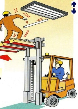 ELEVACION DE PERSONAS Ver NTP 474 Evitar choques con estanterĂas. No empujar las bases de las pilas con las carretillas. No anular el techo protector. Utilizar el cinturĂ³n de seguridad. No inclinarse hacia el exterior.