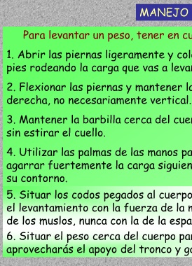 Una manipulación inadecuada de una carga, más o CP-05 menos pesada, puede producir lesiones, ya sean puntuales o acumulativas. MANEJO MANUAL DE CARGAS