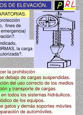 POSIBLES EQUIPOS DE ELEVACIÓN. PELIGROS. PREGUNTAS ACLARATORIAS. GOLPES por ¿Tienen seguro de protección caída de objetos. (Bloqueo automático, fines de Elevadores. carrera, paradas de emergencia) Grúas. los sistemas de elevación?. Gatos. ¿Tienen indicado, Cilindros según NORMAS, la carga hidráulicos. máxima autorizada?. CP-09 • Establecer la prohibición de situarse debajo de cargas suspendidas. • Información del uso correcto de los medios de elevación y transporte de cargas. • Instalar bloqueo automático en todos los sistemas hidráulicos. • Realizar mantenimiento periódico de los equipos. • Comprobar estabilidad de los gatos y demás soportes móviles antes de iniciar trabajos de reparación de automóviles.