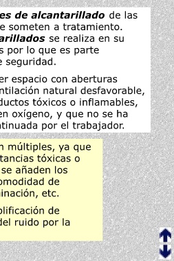 Las aguas procedentes de las redes de alcantarillado de las poblaciones o núcleos habitados se someten a tratamiento. El trabajo de limpieza de alcantarillados se realiza en su mayor parte en lugares confinados por lo que es parte fundamental de las condiciones de seguridad. Un recinto confinado es cualquier espacio con aberturas limitadas de entrada y salida y ventilación natural desfavorable, en el que pueden acumularse productos tóxicos o inflamables, o tener una atmósfera deficiente en oxígeno, y que no se ha concebido para una ocupación continuada por el trabajador. Los riesgos en estos espacios son múltiples, ya que además de la acumulación de sustancias tóxicas o inflamables y escasez de oxigeno se añaden los ocasionados por la estrechez, incomodidad de posturas de trabajo, limitada iluminación, etc. Otro aspecto a destacar es la amplificación de algunos riesgos como en el caso del ruido por la transmisión de las vibraciones.