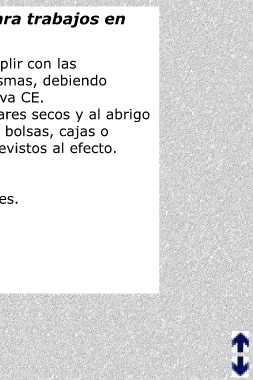 Herramientas especificas para trabajos en instalaciones eléctricas. · Estas deben ser aislantes y cumplir con las especificaciones relativas a las mismas, debiendo estar homologadas según normativa CE. · Estas deben conservarse en lugares secos y al abrigo de la intemperie, transportarse en bolsas, cajas o compartimentos especialmente previstos al efecto. Equipos de protección: · Accesorios y dispositivos aislantes. · Ropa de trabajo especifica. · Calzado de protección. · Guantes aislantes. · Gafas o pantalla de protección. · Casco aislante.