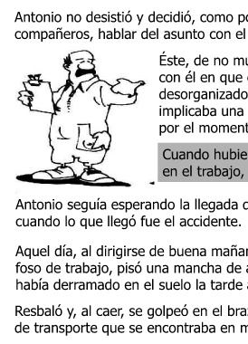 En dos ocasiones comentó con sus compañeros lo incómodo que era trabajar haciendo interrupciones constantes para ir "en busca de la herramienta perdida", además de tener que mantener una vigilancia continua para no chocar con las distintas cosas que se encontraban en las zonas de paso. Los compañeros de Antonio estuvieron de acuerdo con él: aquella situación era muy molesta para todos, por lo que decidieron ser más ordenados e intentar devolver las cosas a su lugar correspondiente después de utilizarlas. Sin embargo, sin saber muy bien el porqué, al cabo de un tiempo la situación caótica volvía a repetirse.